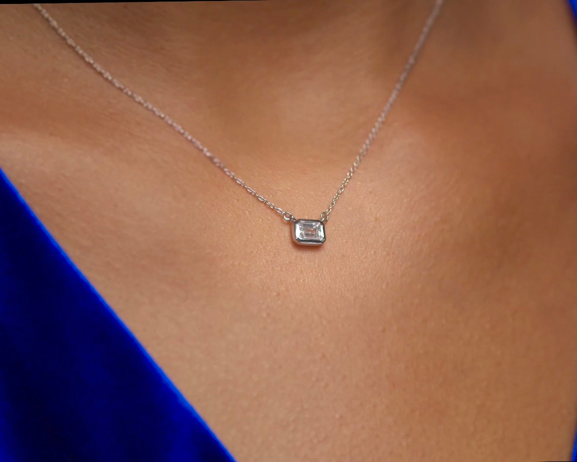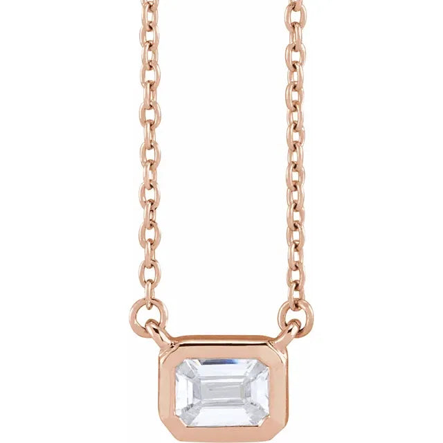 14K Gold 0.50 CT Emerald Cut Bezel Lab Diamond Necklace